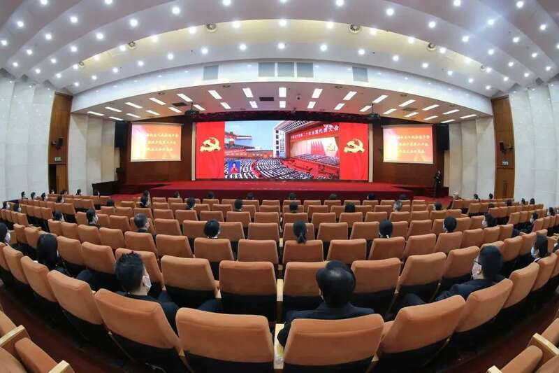 全市23家中基层法院的党员干警在各院收听收看开幕会现场直播,深入学习习近平总书记所作的报告。