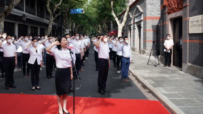 上海市新党员代表入党宣誓活动在中共一大会址前举行(2022年7月1日摄)。新华社记者 刘颖 摄