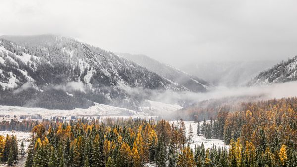 2022年10月18日,新疆阿勒泰地区普遍降雪,部分边境山区中到大雪。大雪过后的中蒙边境前沿,宛如一幅泼墨山水画。