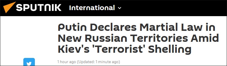 据报道,关于顿涅茨克、卢甘斯克、赫尔松和扎波罗热进入战时状态的命令立即提交俄联邦委员会审议。根据总统令,这四个地区从10月20日起进入战时状态。