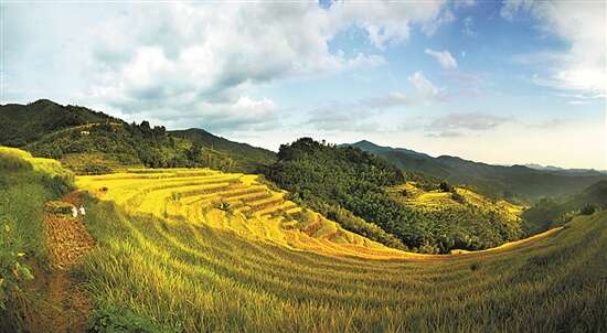 韶关市仁化县扶溪镇蛇离村有“广东最美梯田之称”的蛇离梯田,每个自然村都是在梯田、竹海之中,一片片金黄色的稻浪荡漾,深受摄影家和驴友喜欢。