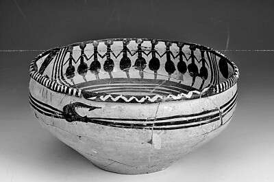 彩陶是陶器发展到一定阶段的产物,在造型、装饰、彩绘,以及烧造技术等方面,都上升到了新的台阶。青海宗日遗址出土的舞蹈纹彩陶盆,尤其是在盆的内壁口沿绘制的一组11人的手拉手原始舞蹈,透露着原始艺术的天然与原始信仰的神秘,不但具有“连臂踏地”歌舞的韵律,也有“趋步辗转”锅庄的粗犷,以及“千人和万人唱”葛天之乐的剪影,为我们破解原始精神密码提供了一把钥匙。甘肃大地湾遗址出土的人头形器彩陶瓶,通体施以弧边三角纹对接圆圈与斜直线勾连三角纹,以及类似于树叶组成的几何型图案,装饰感极强。尤其是瓶口塑造的人面图案,五官端正、面容秀丽,配以短发,直观地反映了黄河先民的华夏特征。类似的人面像在甘青地区的同类遗址中多有发现,为研究早期人类种群面貌特征提供了直观鲜活的标本。河南大河村遗址的彩陶双连壶,造型别致,两壶并连呈一体,通体红衣黑彩间施衡竖平行纹。该器也是大河村遗址中唯一的双连器物,其功能解读认知不一,但所具有的团结、合作意蕴,则是大家的共识。