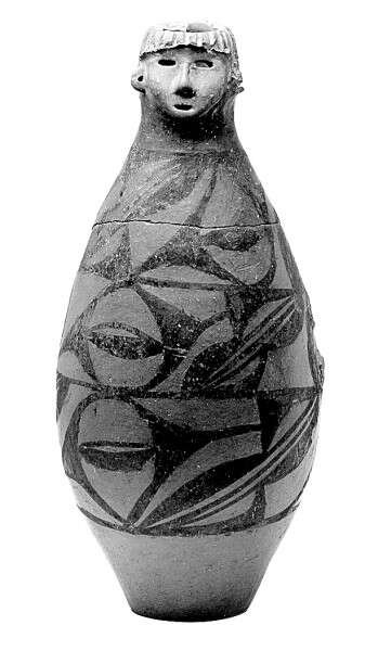 人头形器口彩陶瓶,仰韶文化,一九七三年大地湾遗址出土。图片选自《国宝中的黄河文明》