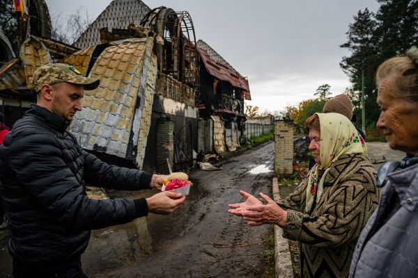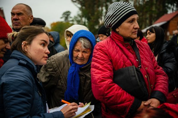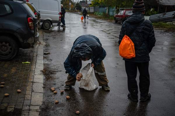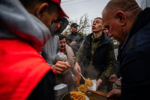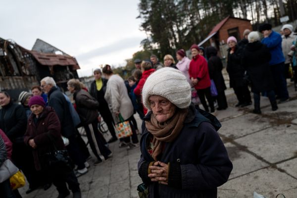 当地时间2022年10月20日,顿涅茨克地区民众领取救济粮。