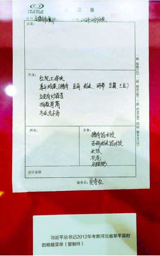 2012年12月29日,隆冬时节,习近平总书记来到河北省阜平县考察,晚上在阜平县城这家经济型酒店用餐。