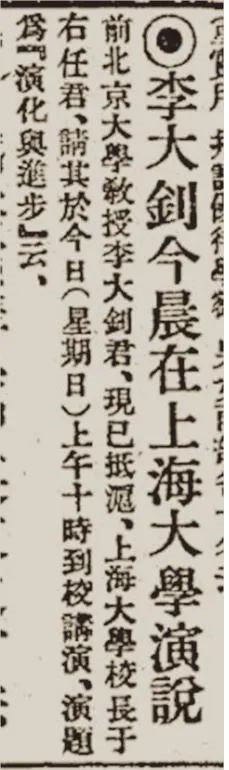 △1923年4月15日,《申报》报道《李大钊今晨在上海大学演说》