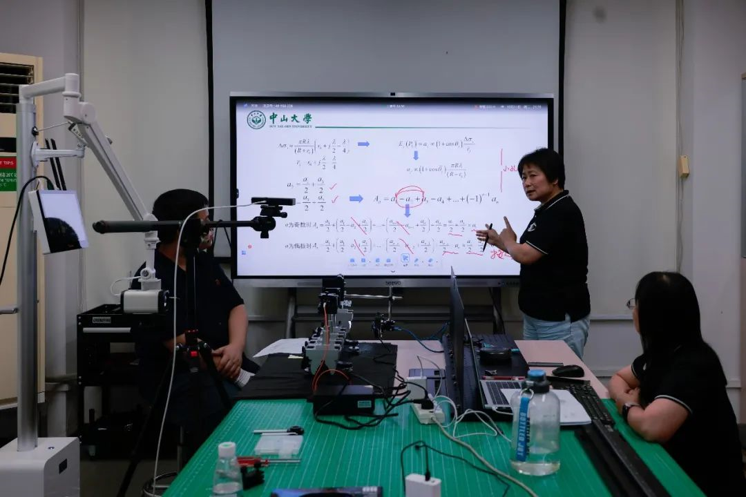为了最终的课程效果,赵福利教授带领物理实验教学中心的崔新图、庞晓宁两位老师,大到教学体系的设计、技术设备的功能,小到摄像机位的调整、互动环节的构思,充分考量。