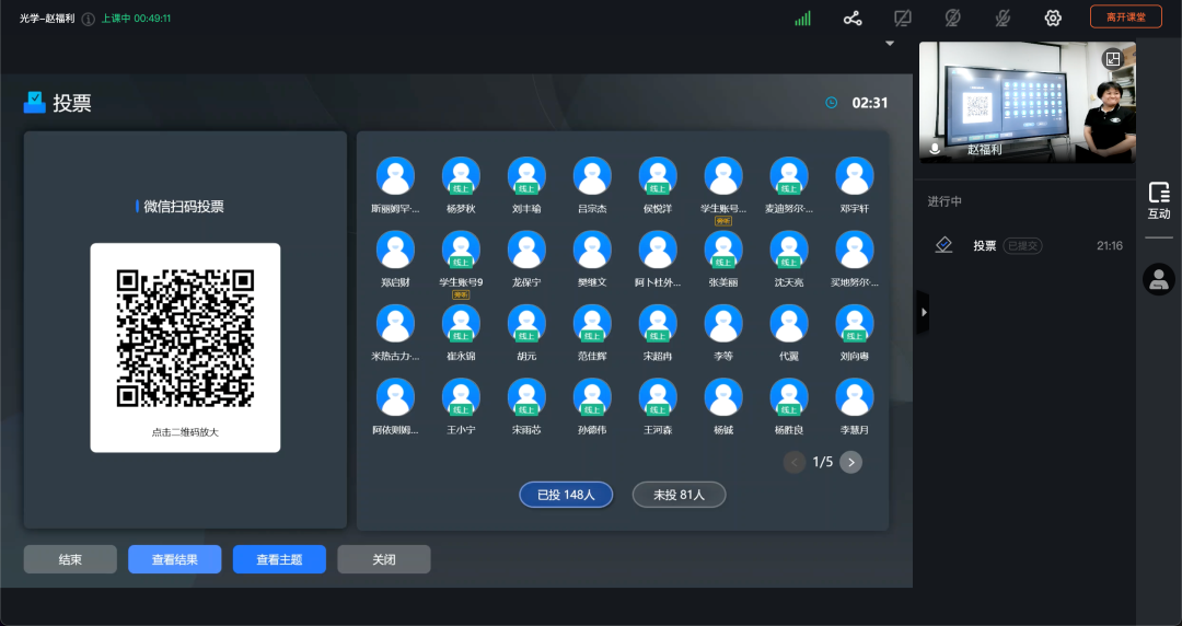 升级打怪仍在继续。被老师上课“点名”答题,是做学生的紧张时刻,也是提升教学效果的一大利器,能带给学生强烈的课堂参与感。赵福利教授想在线上“复刻”这种体验。