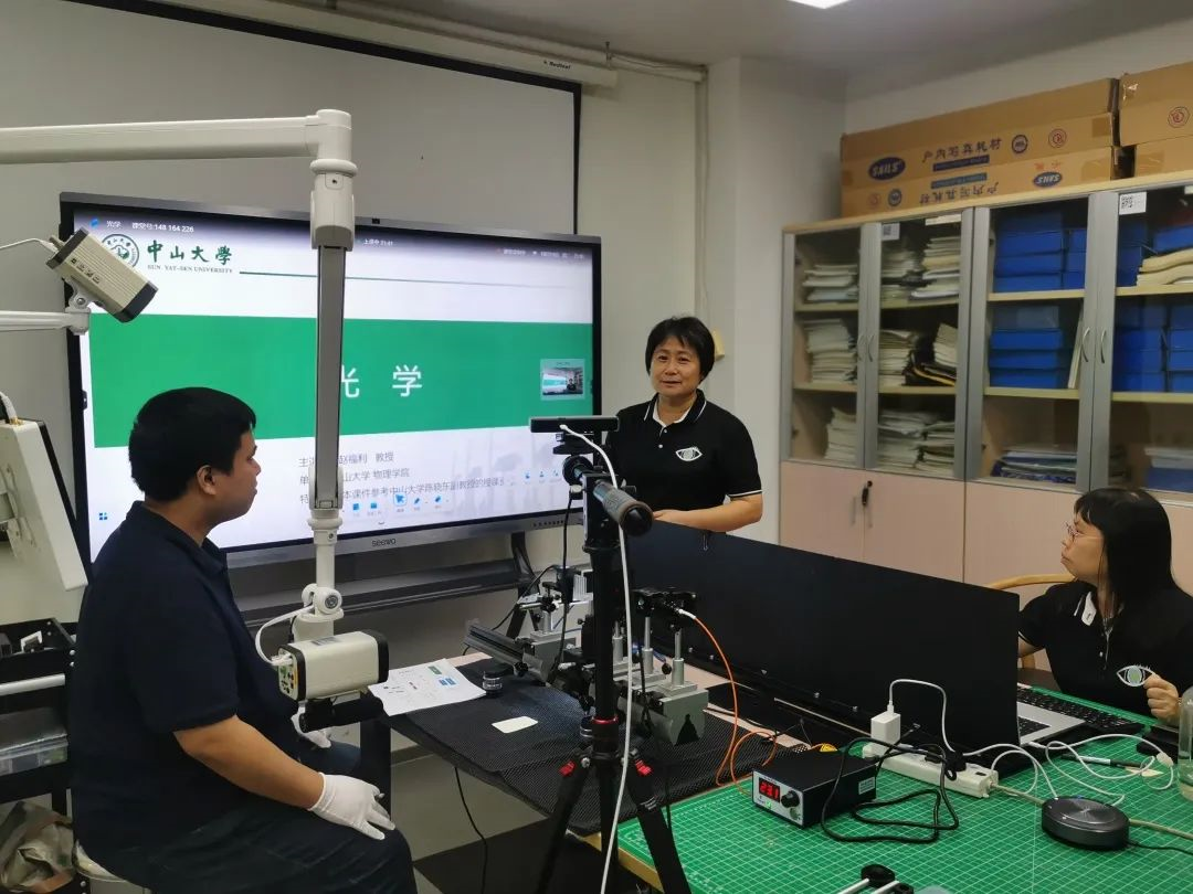 每节光学课上,到场的除了赵福利教授和物理实验教学中心的同事,学校网络与信息中心和平台开发公司都有技术人员驻场,随时解决网络技术问题。