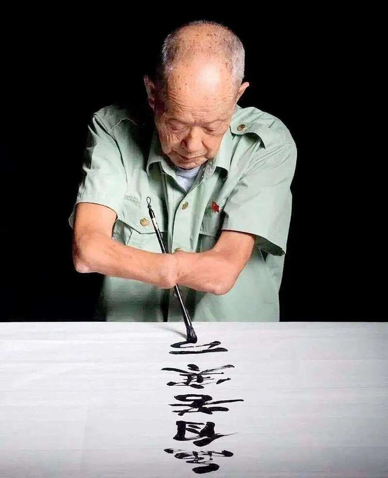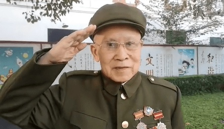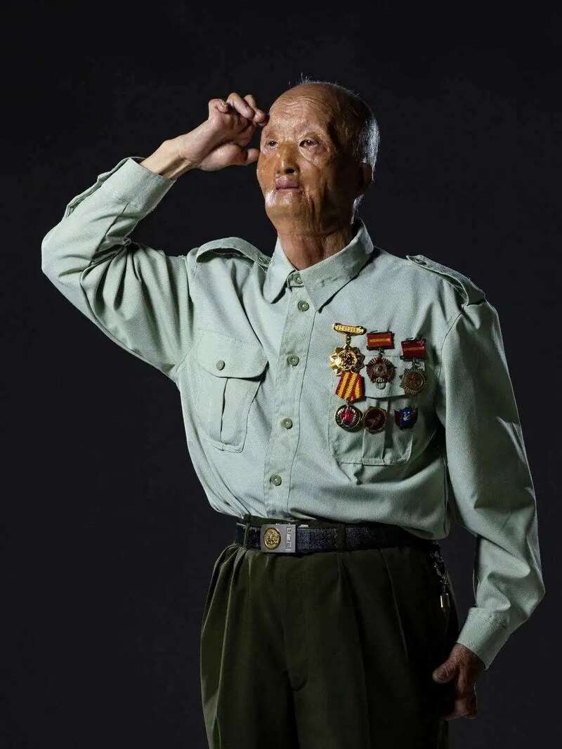 老兵的目光坚定有力。