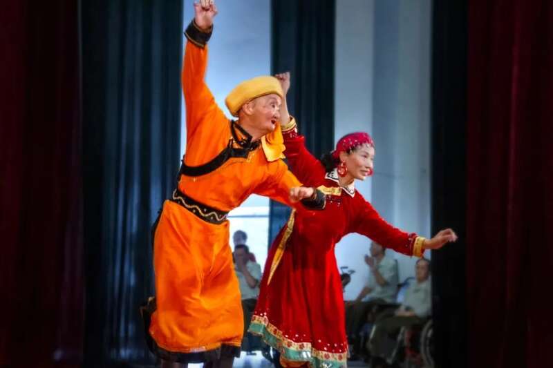 夫妇同台表演自导自编的民族舞蹈