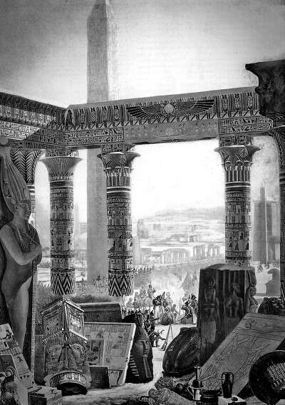 不过,真正使埃及古文明得到新生的,关键还在于拿破仑军队中的近200名著名学者,他们中有东方学家、艺术家、数学家、化学家、医生、建筑师、工程师、自然科学家、社会学家等,其任务是考察埃及社会的方方面面,“探索、绘图,并对不为人知的埃及进行全方位的描述、探查和研究”。这些学者回国后,把他们在埃及的所见所闻、对埃及风土人情的素描和制作的拓片等精心整理出来,于1809年至1829年之间,陆续编纂和出版了24卷本的《埃及记述》(又译作《埃及志》等)。该书一经问世立即引起轰动,它是第一套系统性介绍古埃及文明和社会面貌的科普百科全书式读物,内容极为丰富,插图之精美、装帧之考究,都令人称赞。