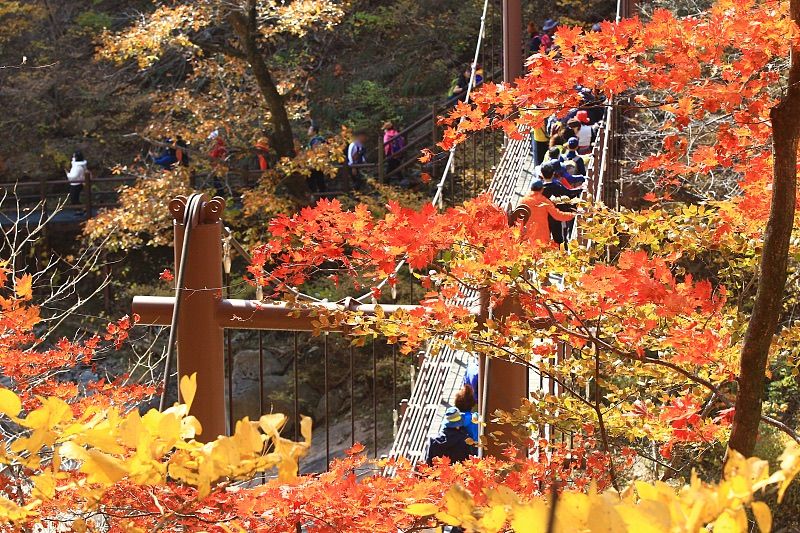 10月22日,韩国江原道,游客们在雪岳山观赏枫叶。