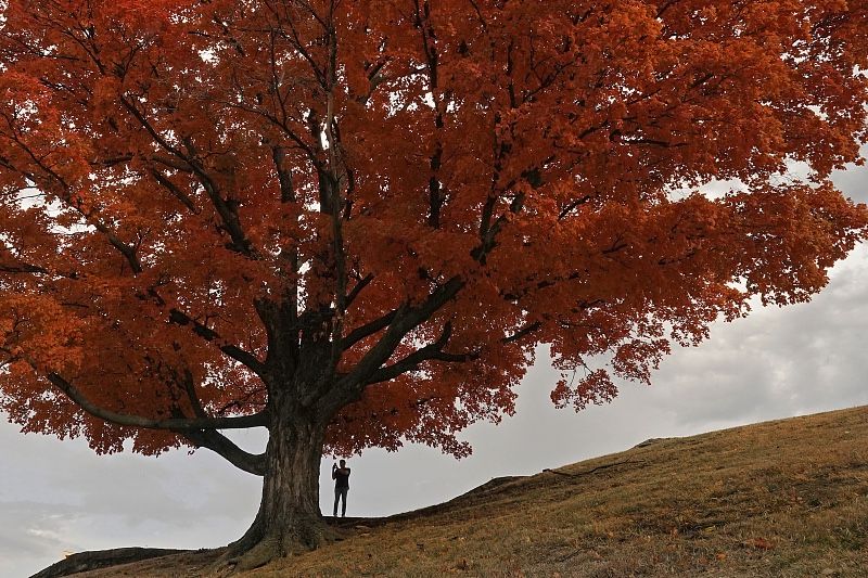 10月23日,美国密苏里州堪萨斯城,一名男子在拍摄秋景。