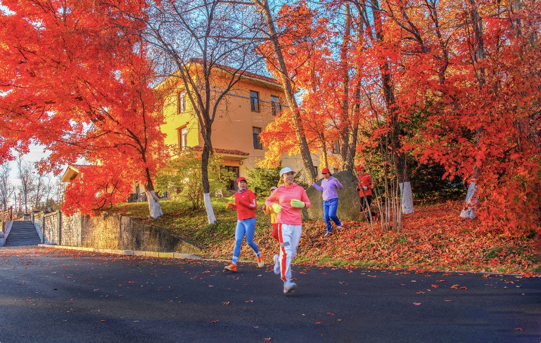 10月16日,中国吉林省舒兰市,九龙山森林公园枫叶如画。