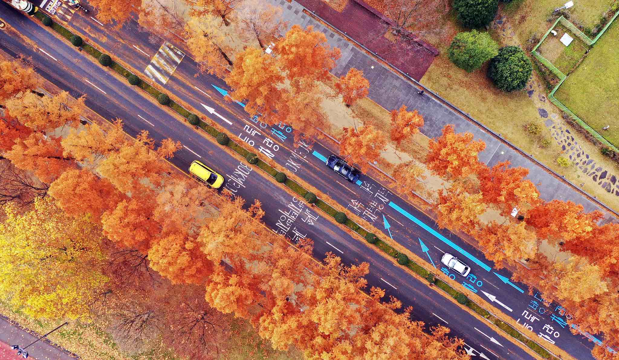 2021年11月22日,韩国光州,全南大学校园里秋色弥漫。