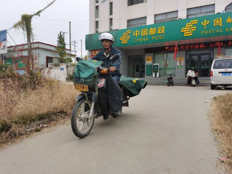邮递员王德建驾车投递信件。(受访者供图)