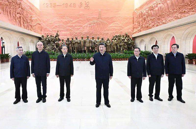党的二十大闭幕不到一周,习近平总书记带领中共中央政治局常委李强、赵乐际、王沪宁、蔡奇、丁薛祥、李希,专程从北京前往陕西延安,瞻仰延安革命纪念地,重温革命战争时期党中央在延安的峥嵘岁月,缅怀老一辈革命家的丰功伟绩,宣示新一届中央领导集体赓续红色血脉、传承奋斗精神,在新的赶考之路上向历史和人民交出新的优异答卷的坚定信念。