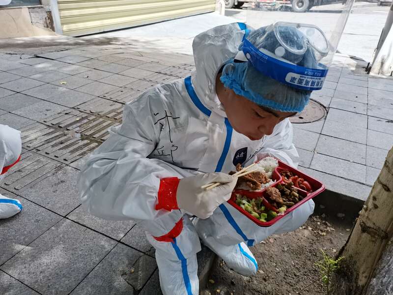 武邱通在西藏防疫期间在任务间隙午餐 团阎良区委供图