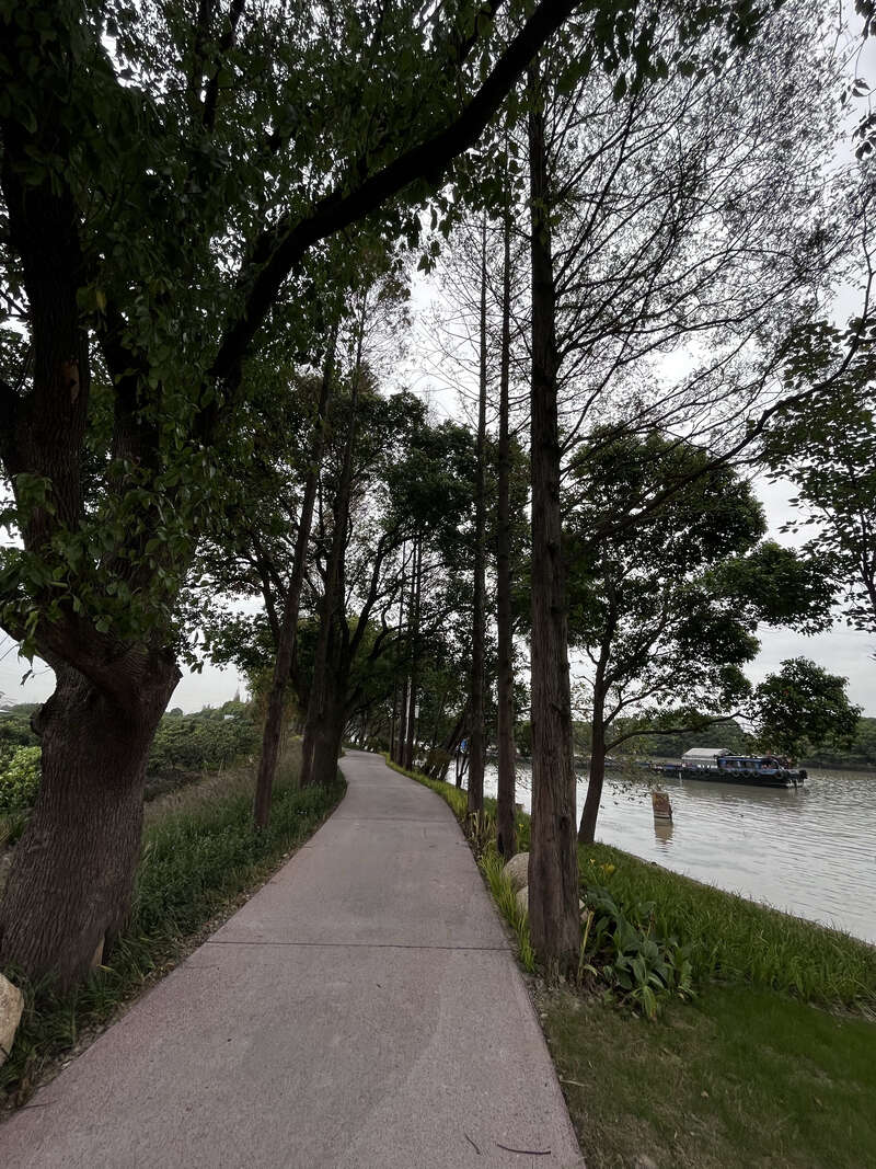 图二:京杭大运河(杭州临平段)在运河的防洪堤顶,建设了10多公里的绿道。中青报·中青网记者 李剑平 摄