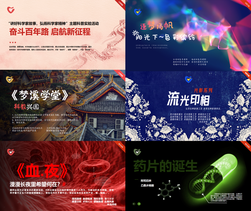 随着化未来科普实验室的发展,越来越多成员参与其中。作为团队项目的学生负责人林青青介绍到:“团队内容创作主要来源于团队成员的想法和创意”。这些想法可能来源奇特、天马行空,可能贴近生活、不易发现,但在经历一系列的研究、设计、讨论和实践之后,它们就可以转化为轻松有趣又浪漫易懂的科普内容。如选材于《红楼梦》,以古代颜料为主题的科普课程《红楼魅影》、以小说《碎玉投珠》为创作灵感的科普论文《“现代”古董——浅谈做旧工艺中的化学原理》等等……