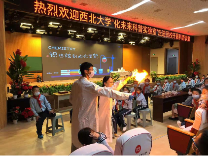2015年,学院的老师和同学组建了化学科普团队,为中小学生提供化学科普实验及讲座。2016年5月30日,习近平总书记在全国科技创新大会上开创性地提出:“科技创新和科学普及是实现创新发展的两翼,要把科学普及放在和科技创新的同等位置。”为了让更多的中小学生了解基础化学知识,感受自然之美,拥有基本的科学素养,2017年,团队通过运营化未来科普实验室,创立“西安心化未来化学科技有限公司”,通过丰富的科普资源、趣味的科普活动,为中小学生提供高质量的科普教育资源。