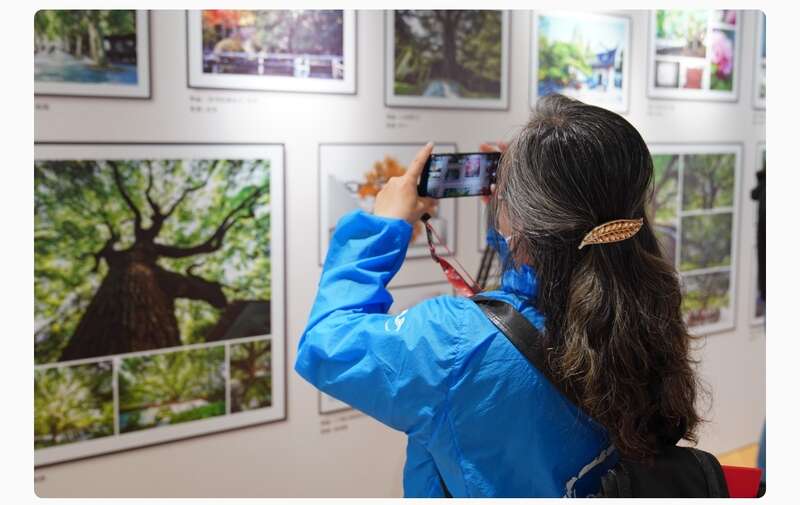 市民游客在古树展中游览、拍照。上海市绿化市容局供图