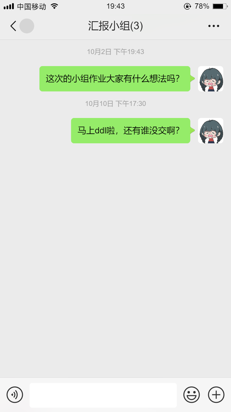 小组群里,不再是组长一人无奈地给其他人“搭便车”的机会,而是大家积极讨论,提出想法见解,为这次小组的pre做好充足的分工准备。