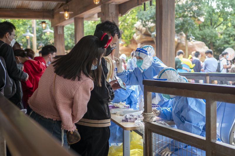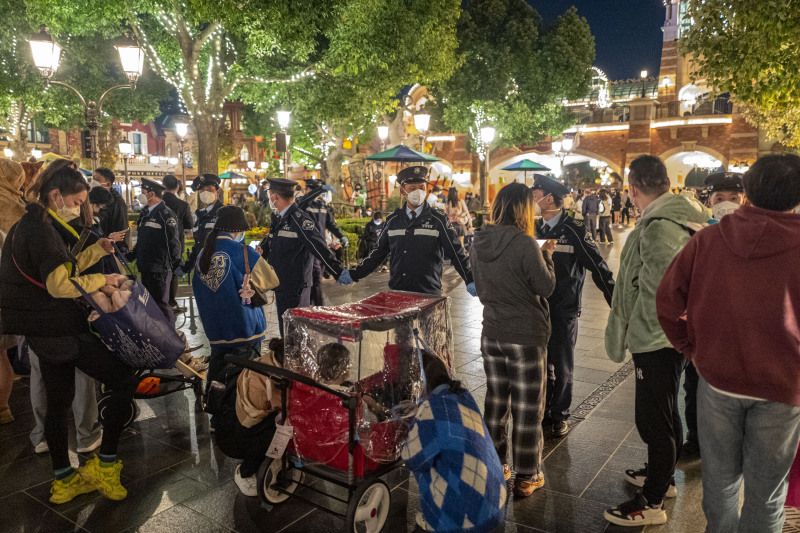 2022年10月31日,上海迪士尼乐园对在园游客进行了有序的核酸采样,并提供了免费晚饭。当日晚间,游客在出示阴性核酸报告及绿色健康码后离场。