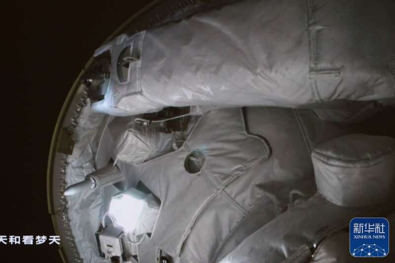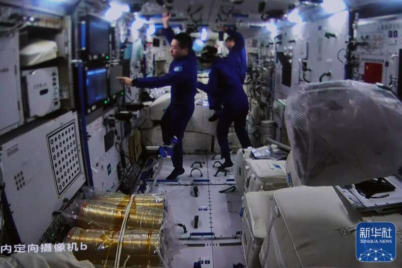 11月1日在北京航天飞行控制中心拍摄的空间站梦天实验舱与空间站组合体在轨完成交会对接。这是梦天实验舱成功对接于天和核心舱前向端口后,天和核心舱内的情况。新华社发(孙丰晓 摄)