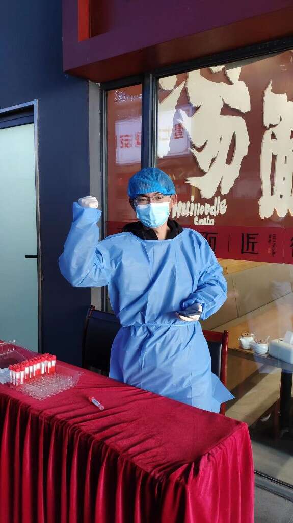 10月25日早7点,二人来到合肥市经开区莲花社区丹霞社居委定点核酸采样点报到,穿戴好医用防护用品,开始了一天的核酸信息采集服务。4个小时后,两人已采集人员信息2203份。