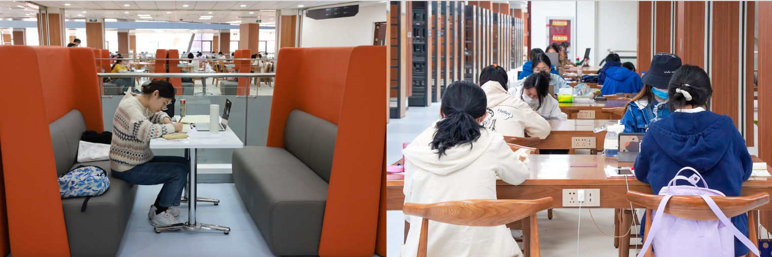 本次图书馆物理空间、知识空间和信息空间的升级改造,解决了读者反映已久的七大痛点:一是座椅更多了,座位数由原先的1800个增加到4100余个;二是照明更亮了,图书馆全馆照明全部更新,部分挑空区域阅览桌加装台灯;三是网速更快了;四是插座更足了,阅览桌上全部安装插座;五是研讨间更多了,普通研讨间数量增加至19个,并新建音像设备优良的3个精品视听间;六是舒适度更好了;七是安全更有保障了。