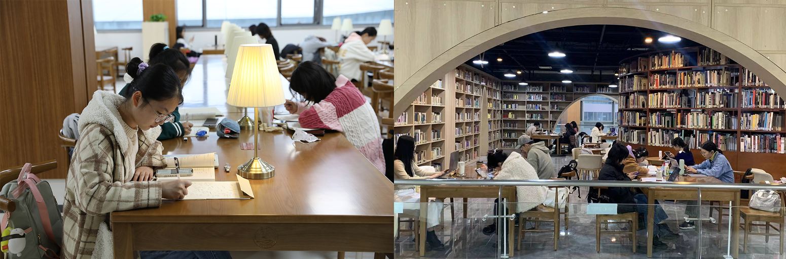 此外,图书馆还根据读者阅读需求,在空间建设上打造了五大亮点:一是设置不同主题空间,开放库本库,建立库本阅览区,增设外文阅览区、古籍阅览区等;二是专设中传学者文库;三是新设教师书吧等休闲交流空间;四是开辟开放式研讨区;五是设置了站立式阅览桌、静音仓等空间。