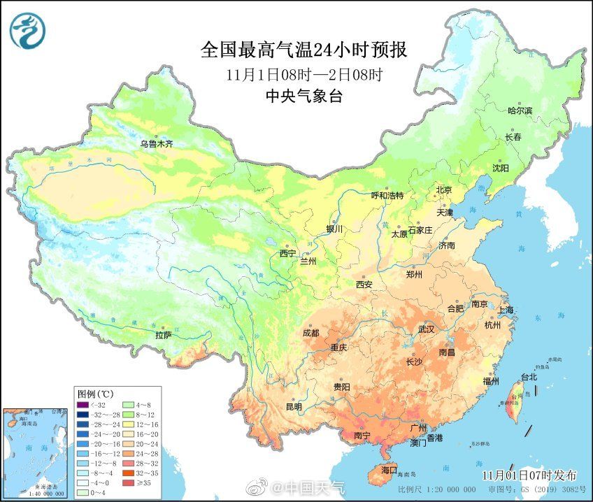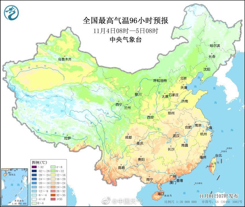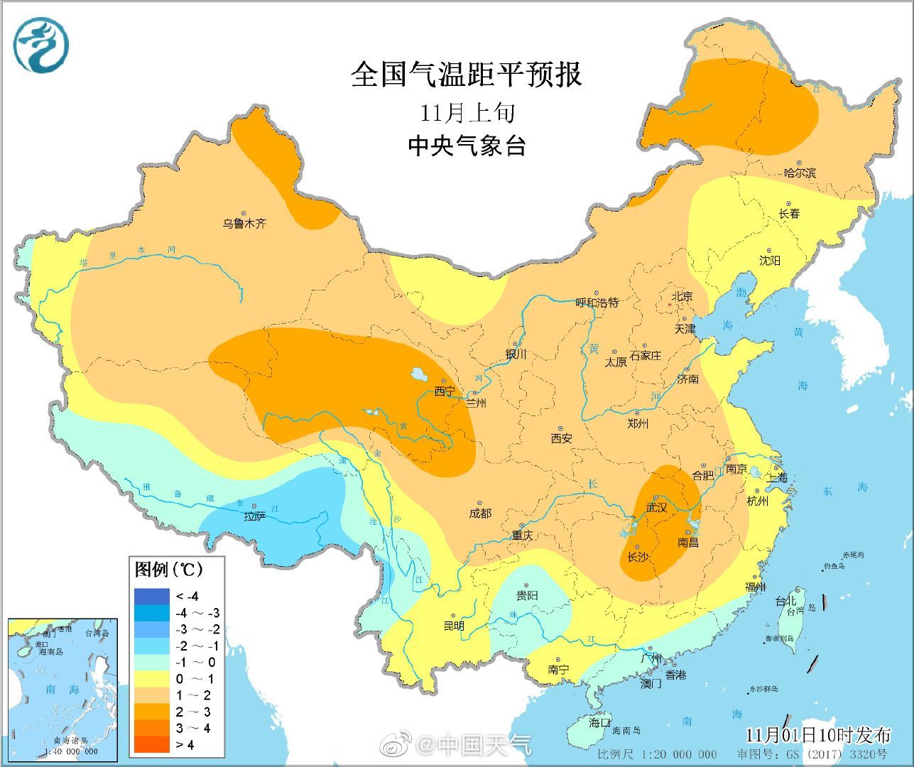 这轮冷空气结束后,我国总体气温走势又将如何?王伟跃表示,展望后期,随着这轮冷空气落幕,我国大部地区又将受暖脊控制,总体来看,11月上旬,除西北地区、黑龙江、内蒙古东部以及四川盆地等地平均气温较常年同期偏高1~2℃外,其余大部地区气温基本接近常年同期。