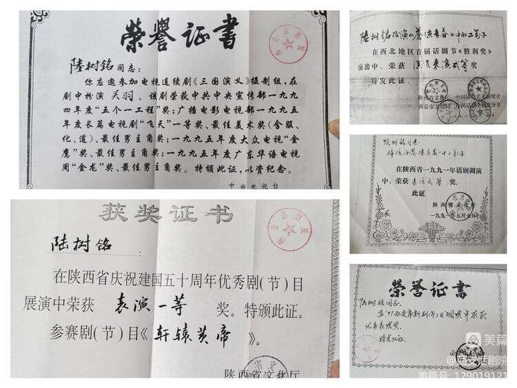 陆树铭老师曾在陕西省庆祝建国五十周年优秀剧目展演中荣获表演一等奖,在西北地区首届话剧界《胜利奖》演出中荣获表演二等奖,在97年西安市新剧节目调演中荣获优秀表演奖以及陕西省文化艺术节优秀表演奖。他参加电视连续剧《三国演义》摄制组,在剧中扮演关羽,荣获中共中央宣传部一九九四年度“五个一工程”奖;广播电影电视部一九九五年度长篇电视剧“飞天”一等奖、最佳男主角奖;一九九五年度大众电视“金鹰”奖、最佳男主角奖;一九九五年度广东华语电视周“金龙”奖、最佳男主角奖。