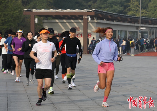 “萌叔”也报名了今年的北马,最近每到周末,他就去奥森公园备战。这段时间,每逢周末的早晨,不少跑者就在奥森公园集结,列成几队,从公园南门附近的北京2022年冬奥会会徽前跑过,有人称他们为“奥森小火车”。“很多跑友结队相伴,齐刷刷的步伐,听着就很有氛围感。”一位跑者说。