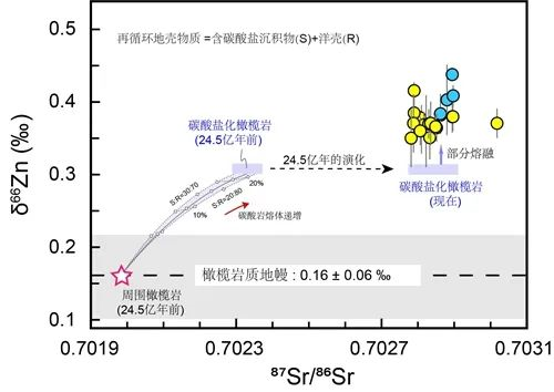 Sr-Zn同位素相关图展示再循环碳酸盐与HIMU型地幔端元的形成过程
