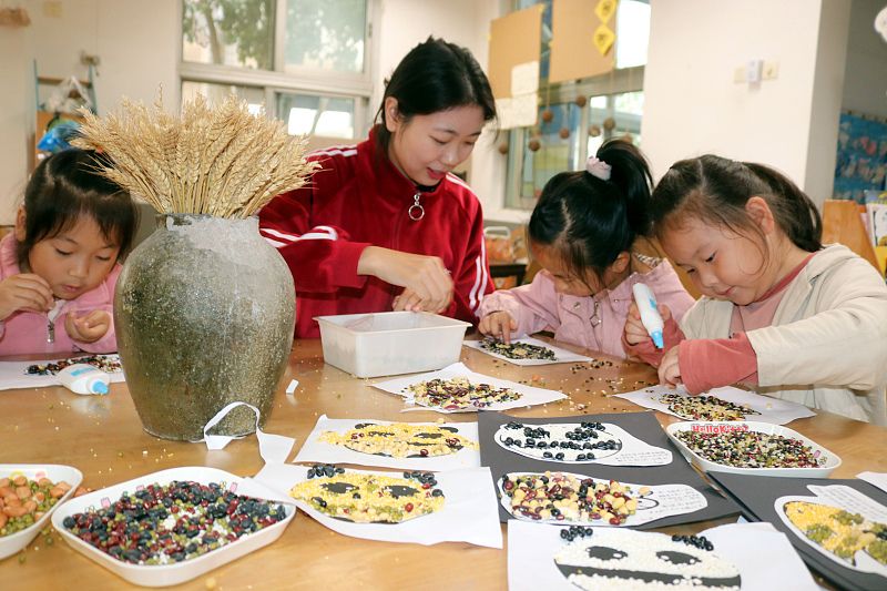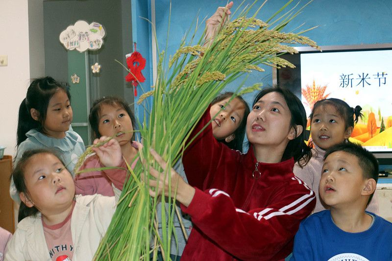 2022年11月3日,苏州市,虎丘中心幼儿园举行“新米节”活动。让孩子们在认知农作物的同时,懂得农民的辛劳,学会爱粮惜粮。