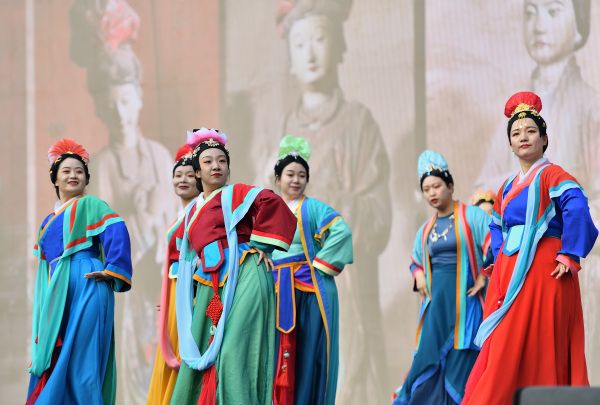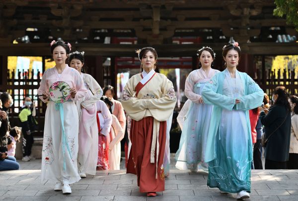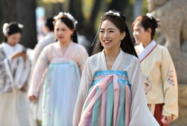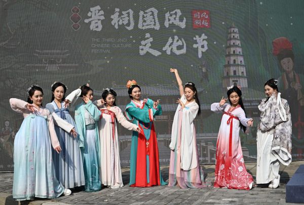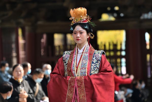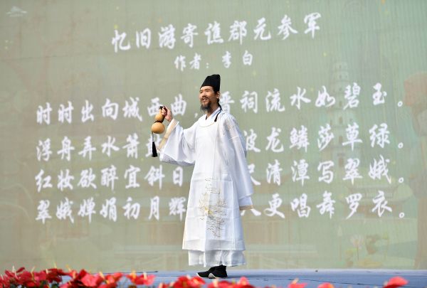 2022年11月5日,太原,讲解员扮作“李白”在晋祠中吟诗。当日,第三届晋祠国风文化节在晋祠博物馆启幕。 中新社记者 韦亮 摄