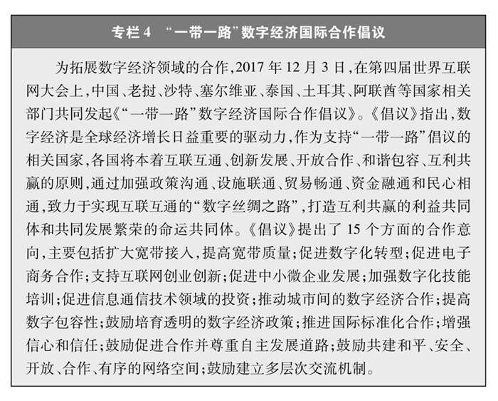 中国积极参与国际和区域性多边机制下的数字经济治理合作,推动发起多个倡议、宣言,提出多项符合大多数国家利益和诉求的提案,加强同专业性国际组织合作,为全球数字经济治理贡献力量。