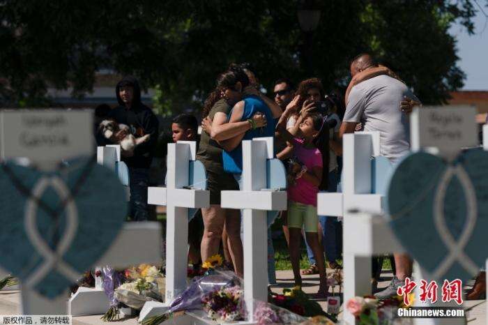 当地时间5月26日,美国得克萨斯州尤瓦尔迪市,民众悼念小学枪击案近20名儿童遇害者。