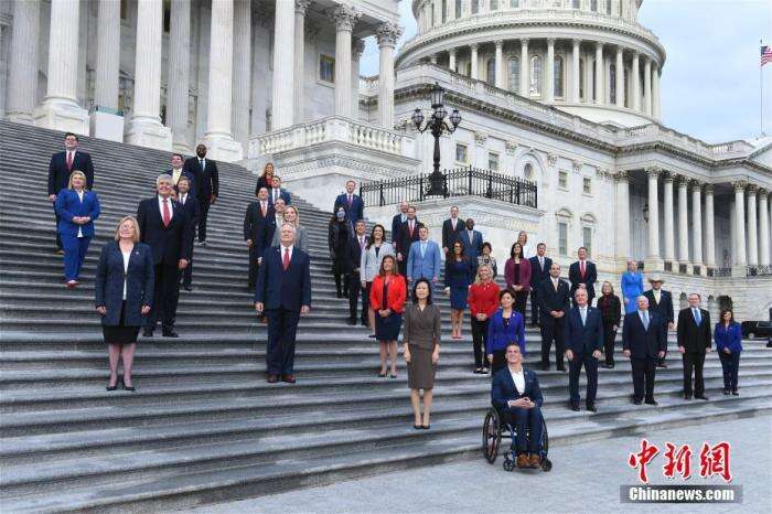 当地时间2021年1月4日,美国第117届国会当选共和党众议员亮相。中新社记者 陈孟统 摄