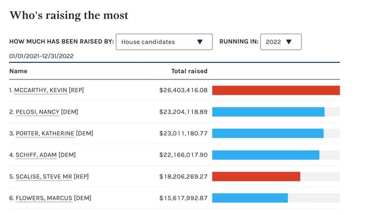联邦竞选委员会网站上,众议院候选人筹资排名中,麦卡锡名列第一