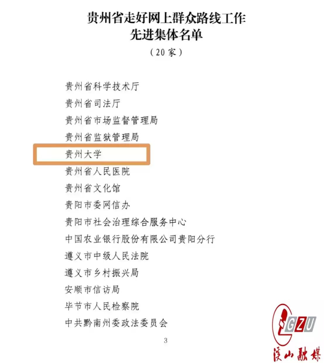近日,中共贵州省委网络安全和信息化委员会发布了《关于表扬2022年贵州省走好网上群众路线工作先进集体、优秀政务账号、优秀案例的通报》,在2022年贵州省走好网上群众路线活动中,贵州大学获“2022年贵州省走好网上群众路线工作先进集体”称号。