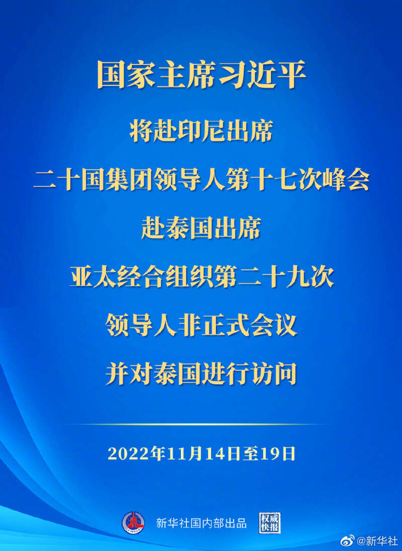 应泰王国总理巴育邀请,国家主席习近平将于11月17日至19日赴泰国曼谷出席亚太经合组织第二十九次领导人非正式会议并对泰国进行访问。