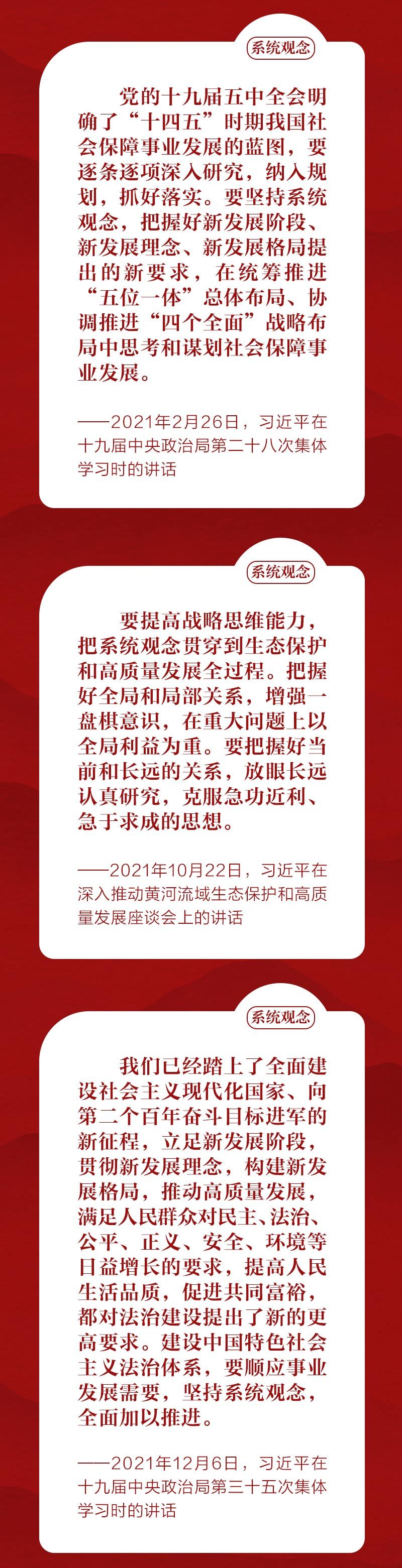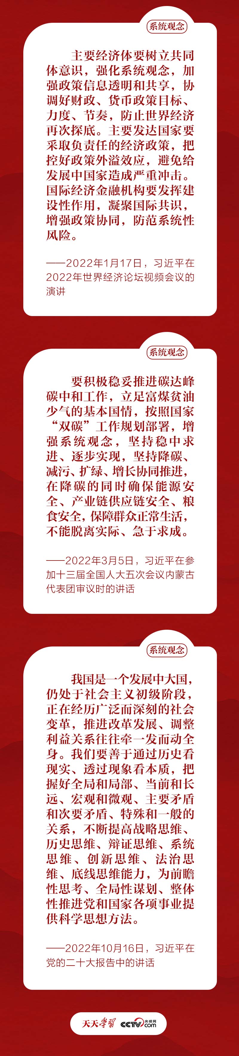 天天学习 “必须坚持系统观念。万事万物是相互联系、相互依存的。只有用普遍联系的、全面系统的、发展变化的观点观察事物,才能把握事物发展规律。”
