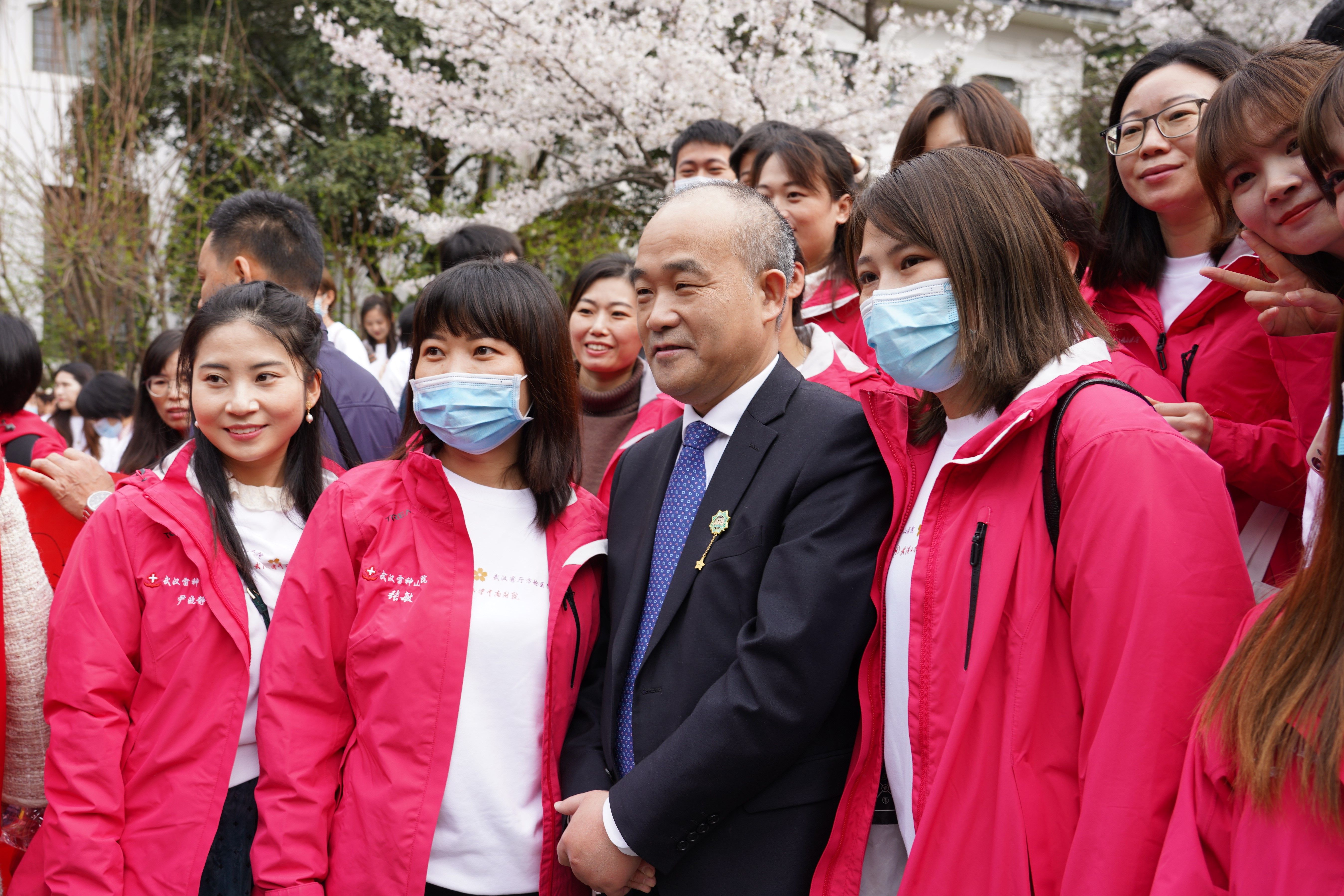 窦贤康院士和援鄂医疗队在武大樱花树下相聚
