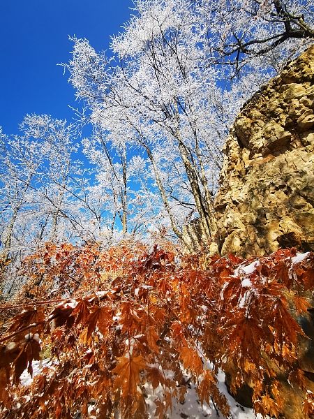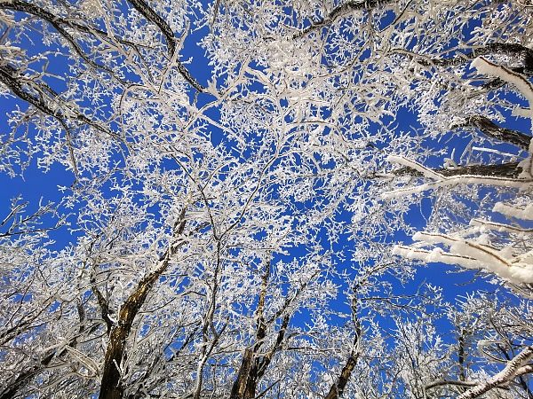 辽宁本溪现雾凇景观 阳光照耀下晶莹剔透银白如花