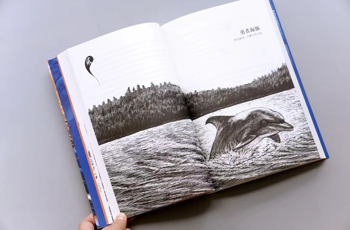 海豚还很聪明,从脑容量和身体重量的百分比来说,海豚和人类很接近。海豚会唱歌、会集体行动;还是跳水运动员,经过简单训练后就能表演很优美的节目……但即便海豚和人类如此接近,人类对真实的海豚生活也不是特别了解,所以我选择写海豚。
