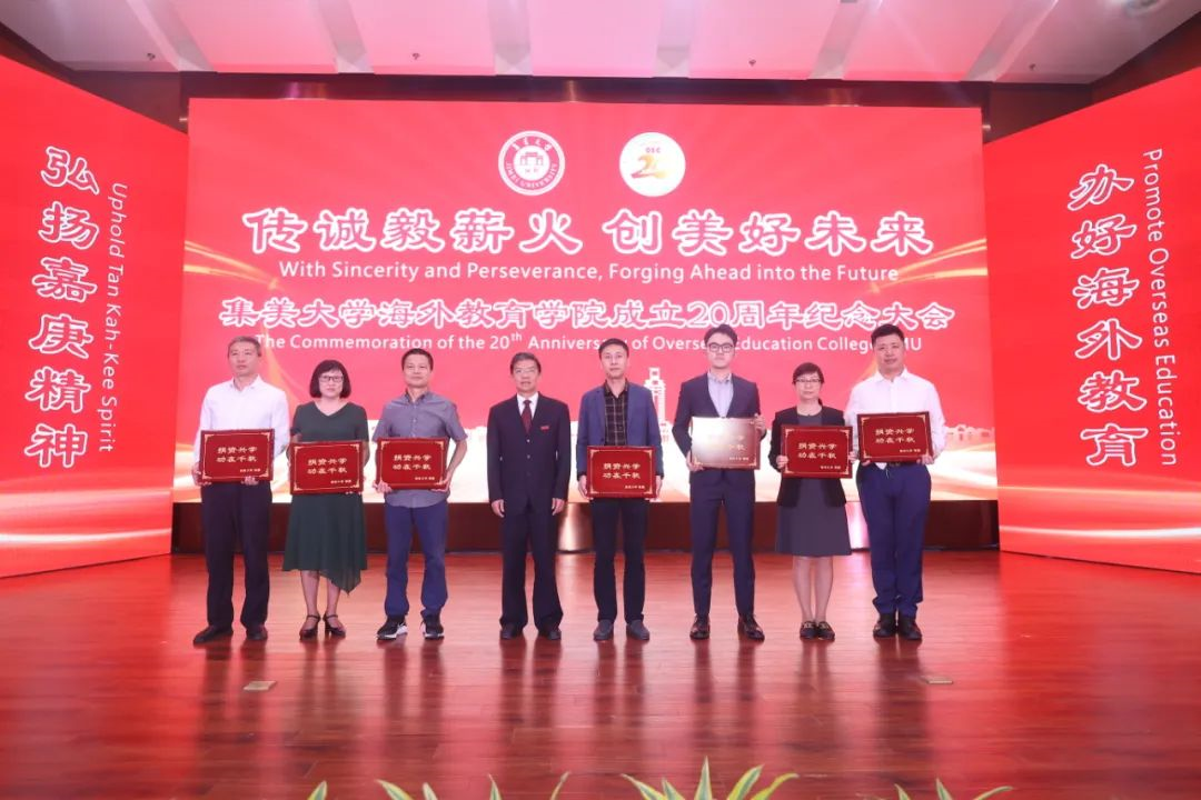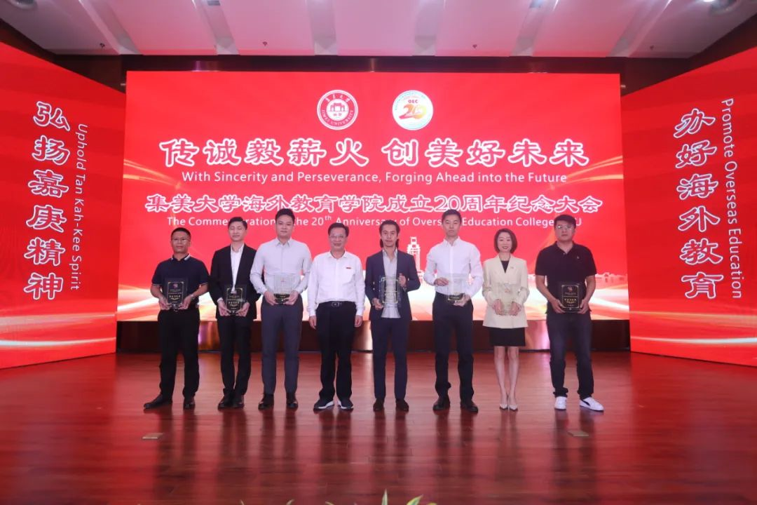 福建省委统战部副部长肖华鑫,厦门市委统战部常务副部长、市侨办主任何秀珍,厦门市侨联党组书记、主席陈俊泳,福建省委统战部文化教育处处长俞峰、集美学校委员会副主任翁荣标,厦门大学国际中文教育学院、海外教育学院院长陈志伟,集美大学校董会顾问陈永栽先生代表、集美大学校董、裕景兴业(厦门)有限公司总经理柯贤良,集美大学校董、北京泓深教育科技有限公司董事长邹清光,集美区委统战部、集美区侨联、集美侨英街道、集美街道代表,合作院校代表、捐赠单位代表、兄弟院校代表、海外教育学院各地校友代表,集美大学历任老领导、现任校领导、校友总会领导、机关部处和各学院负责人以及海外教育学院历任老领导、师生员工相聚校园,共同纪念我校成立海外教育学院二十周年,再启新时代海外教育新征程。